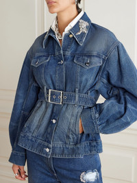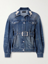 Belted embellished denim jacket Mid denim