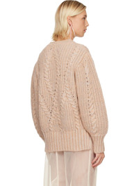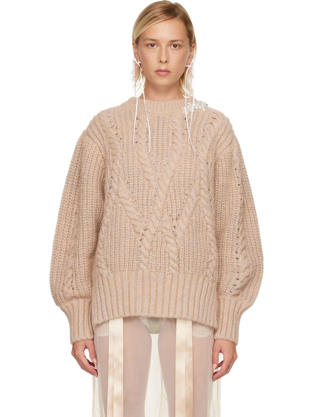 Cable-knit superfine alpaca-blend sweater. · Metallic thread detailing throughout · Rib-knit crewneck, hem, and cuffs · Beaded faux-pearl accents at collar · Vented side seams · Dropped shoulders · Balloon sleeves Supplier color: Rose/Pearl 48% superfine alpaca, 8% merino wool, 21% polyamide, 23% metallic fibre. Made in Portugal 252405F096000