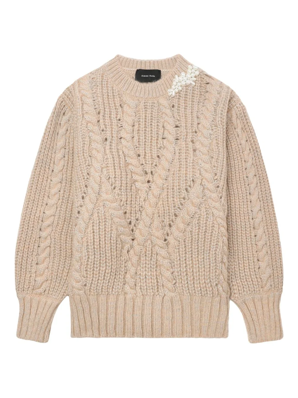 pearl-embellished cable-knit sweater Highlights Imported Composition Alpaca 77%, Metallised Fibres 23%