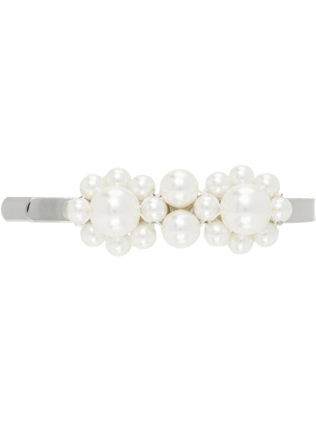 Hair clip in silver-tone brass. · Beaded faux-pearl accents at face · Logo engraved at back face · H0.5" x W2" Supplier color: Pearl
