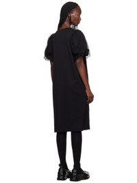 Cotton jersey dress. · Faux-pearl accents at round neck · Gathering and bow accent at front · Seam pockets · Tulle overlay at puff sleeves Supplier color: Black/Black/Pearl