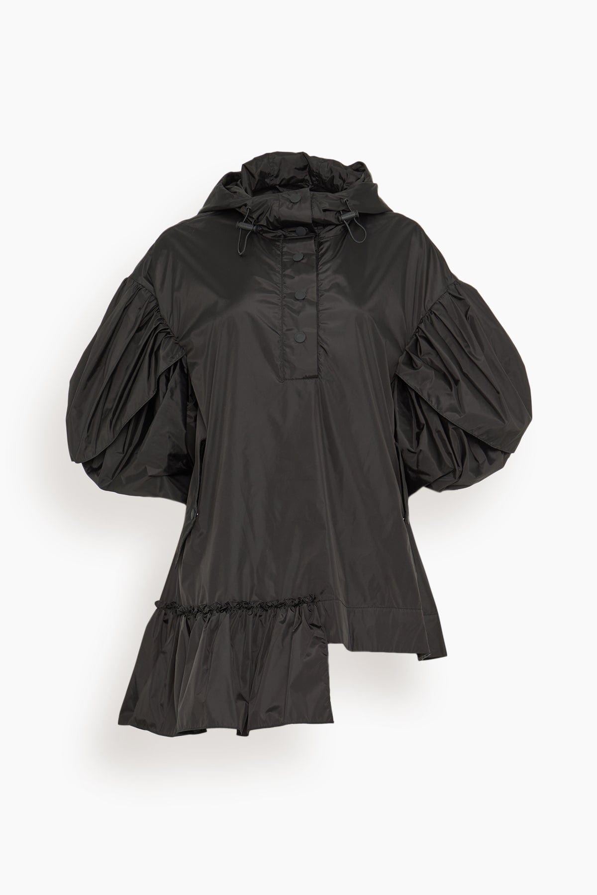 The Simone Rocha Ruffle Detail Petal Sleeve Cagoule walked their Spring 25 runway. This jacket features a voluminous silhouette with puffed sleeve and ruffling in nylon. Wear yours with a skirt and loafers. FIT DESCRIPTION MODEL MEASUREMENTS - Oversized fit; we suggest taking your normal size for the designed fit - Snap button closure - Puffed sleeves - Ruffle detail - Nylon/polyamide - Harriet is wearing a size 6/ 2 US - Bust: 32" - Waist: 24" - Hips: 30.5" - Height: 5’8.5”