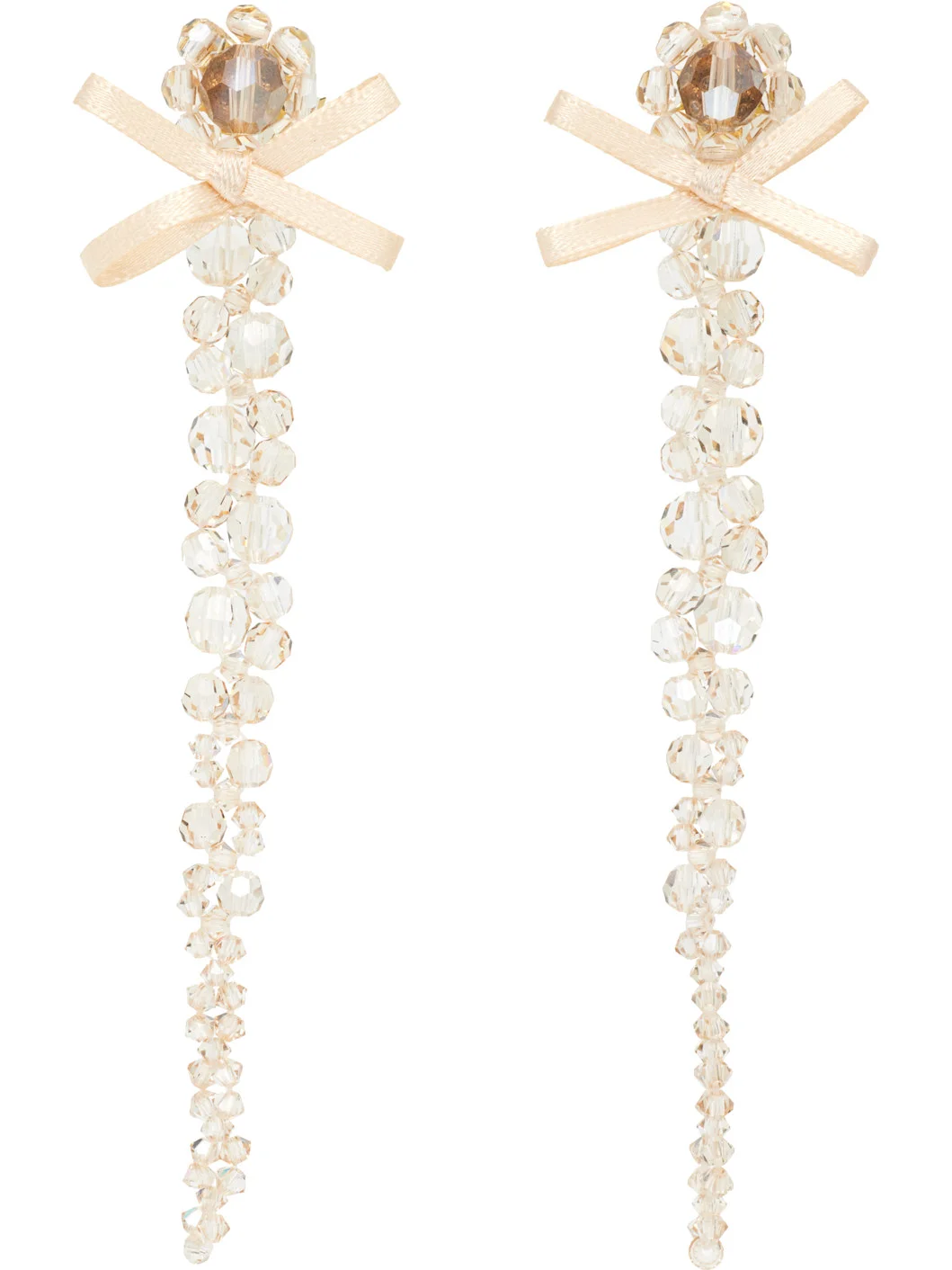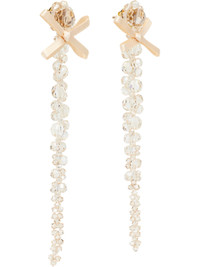 Pair of beaded glass drop earrings. · Satin bow at face · Post-stud fastening · Gold-tone brass hardware · H4"x W0.5" Supplier color: Biscuit Brass, glass, textile. Made in Portugal 252405F022007