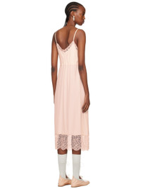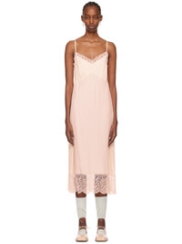 Acetate- and silk-blend crepe de chine dress. Lace trim and scalloped edges throughout. · V-neck · Gathering at cups · Fixed adjustable spaghetti straps · Unlined Supplier color: Pale rose