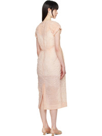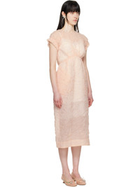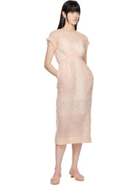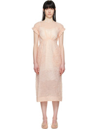 Semi-sheer cotton-blend cloque midi dress. · Round neck · Gathering at waist · Seam pockets · Raglan cap sleeves · Ruffled trim at elasticized cuffs · Zip closure at back · Central vent at back hem Supplier color: Peach Body: 44% cotton, 33% polyamide, 23% polyester. Lining: 60% acetate, 40% viscose. Made in Portugal 251405F054025