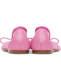 Mesh ballerina flats in pink. · Bow and floral hardware with crystals at vamp · Grosgrain trim at collar · Buffed leather heel counter · Padded leather footbed · Stacked leather heel with rubber injection · Nubuck sole Supplier color: Bright pink/Red Upper: textile. Sole: leather. Made in Portugal 251405F118000