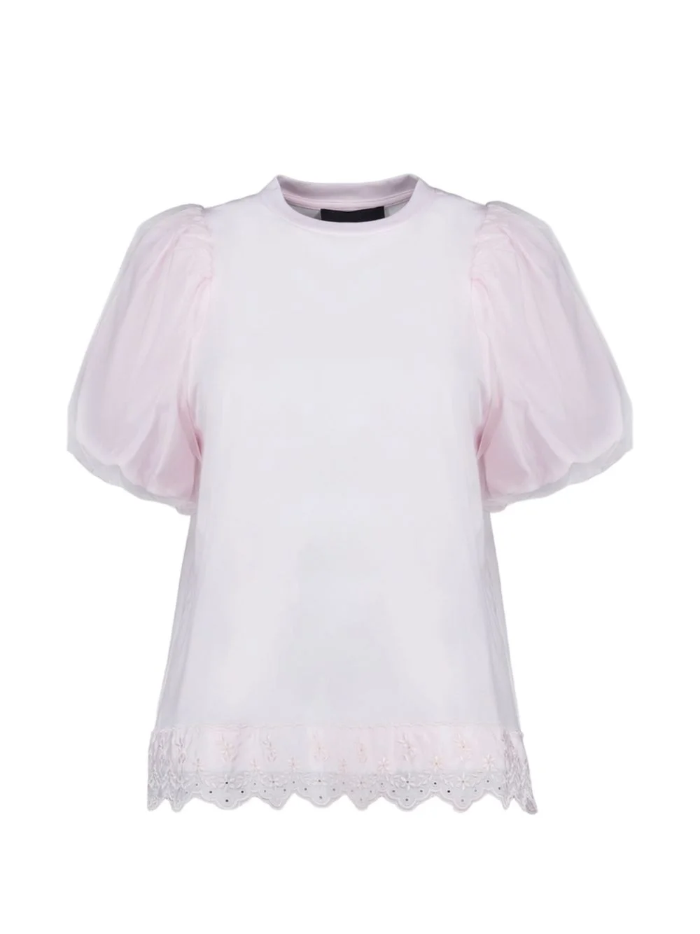 puff-sleeve lace T-shirt Highlights - Pale pink - Lace detailing - Puff sleeves - Short sleeves - Tulle overlay Imported Composition Cotton 100% Washing instructions Read Manufacturer Guidelines