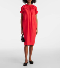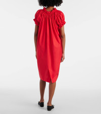 Puff-sleeve ruffled cotton midi dress