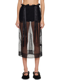 Black Sheer Bow Ribbon Pencil Midi Skirt