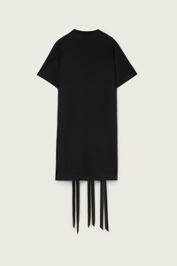 An oversized t-shirt dress with a corseted detail throughout, satin ribbons are laced throughout for a patchwork effect, it features a relaxed round neckline for comfort. Product Details Cotton jersey dress - Laced ribbon detail throughout - Oversized fit Composition: 100% Lyocell Trim: 100% Polyester SKU: 7414 0553 BLACK Size & Fit Model is wearing size Medium.