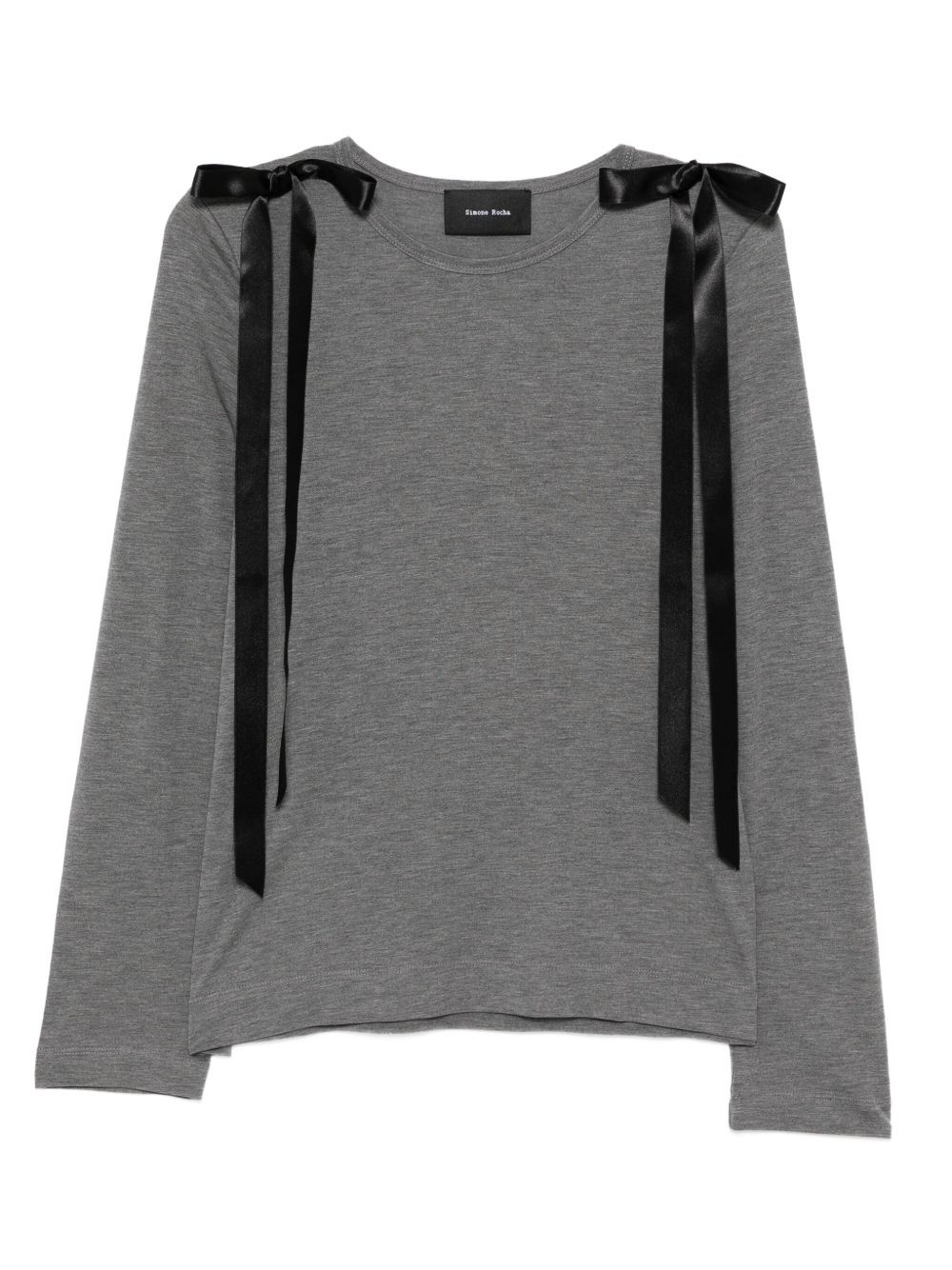 ribbon-detailing T-shirt Highlights - Smoke grey - Crew neck - Long sleeves - Straight hem Imported Composition Lyocell 100% SIZE & FIT Model measurements Height 5 ft 9 in(1.76 m) Bust/Chest 31.1 in(79 cm) Hips 35.03 in(89 cm) Waist 24.4 in(62 cm) FittingInformation Designed to be unstructured, offering a loose fit throughout Made from a midweight non-stretch fabric, this piece offers minimal elasticity when worn