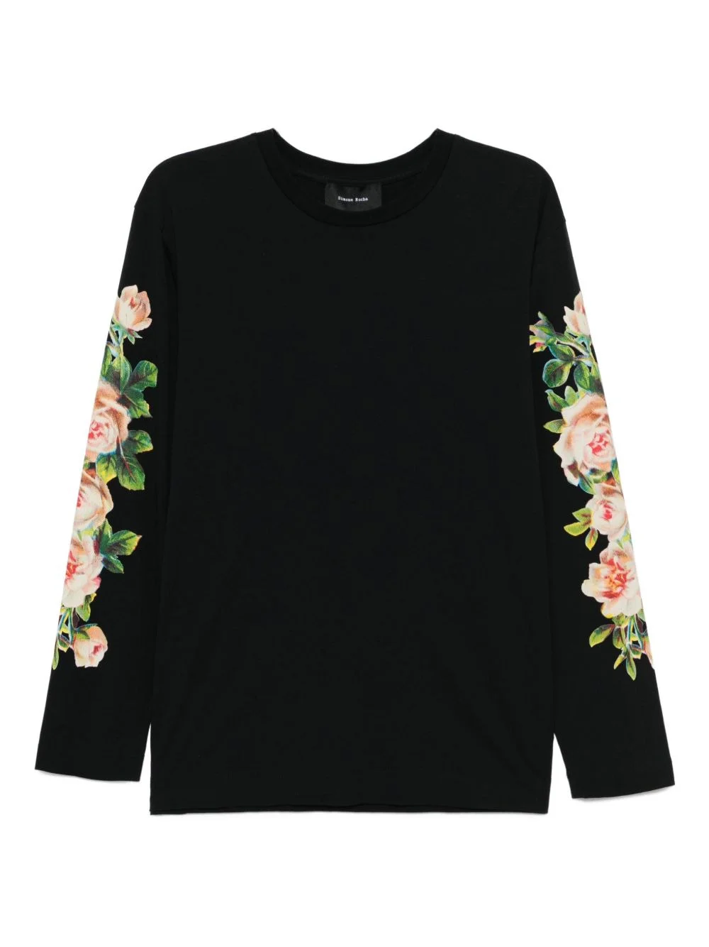 floral-print T-shirt Highlights - Black - Long sleeves - Crew neck Imported Composition Cotton 100% SIZE & FIT Model measurements Height 5 ft 9 in(1.76 m) Bust/Chest 31.1 in(79 cm) Hips 35.03 in(89 cm) Waist 24.4 in(62 cm) FittingInformation Designed to be unstructured, offering a loose fit throughout Made from a midweight non-stretch fabric, this piece offers minimal elasticity when worn Washing instructions Machine Wash