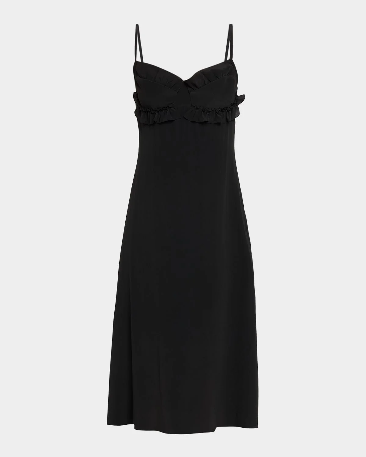 - Simone Rocha dress with ruffle trim detailing through the bust - Sweetheart neckline - Sleeveless - Hem falls below the knee - A-line silhouette - Invisible back zipper - Acetate/silk/nylon/polyamide - Made in Portugal