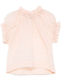 ruffle tulip top Highlights - Peach orange - Ruffle collar - Elasticated cuffs Imported Composition Cotton 100% SIZE & FIT Model measurements Height 5 ft 10 in(1.78 m) Bust/Chest 24.4 in(62 cm) Hips 35.43 in(90 cm) Waist 31.88 in(81 cm) FittingInformation Designed for a slim fit that sits just away from the body offering a close yet comfortable fit Made from a midweight non-stretch fabric, this piece offers minimal elasticity when worn