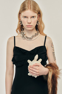 Simone Rocha's signature slip dress receives an update with an exaggerated frill detail at the bust. This detail is reminiscent of a bustier, adding to the brand's classic silhouette. Product Details Silk mix crepe de chine slip dress - Sweetheart neckline - Ruffle bust detail - Adjustable shoulder straps Composition: 73% Acetate 27% Silk Trim: 79% Polyamide 21% Elastane SKU: 7407 0514 BLACK Size & Fit Model is wearing size 6.