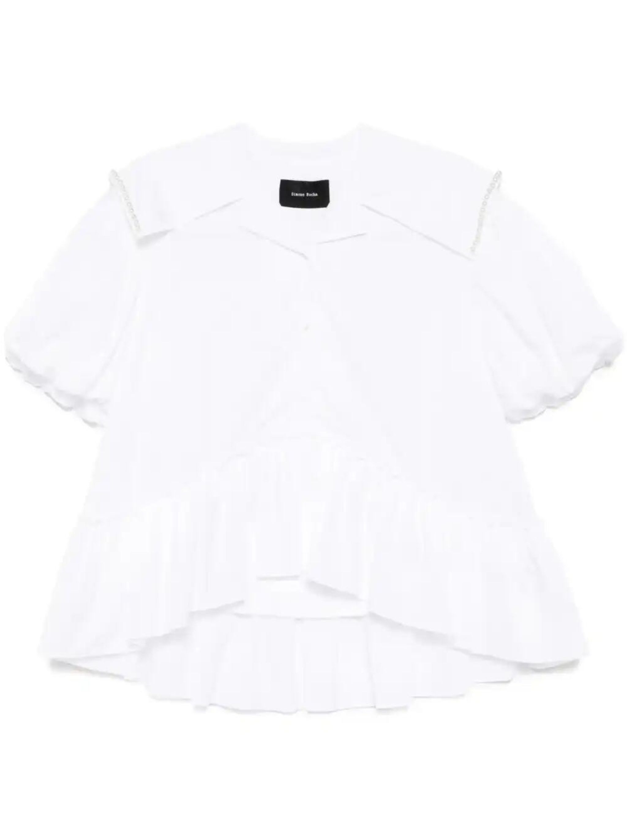 white front button fastening faux-pearl embellishment high-low hem Size & Fit Model Measurements: Height: 1.77 m Bust/Chest: 77.0 cm Hips: 86.0 cm Waist: 64.0 cm Model wears size 8 Fabric and Care Designer Style ID: 5327B1025WHITEPEARL Designer Colour: WHITE/PEARL Composition: Cotton 100% Washing instructions: Hand Wash Made in Portugal