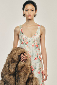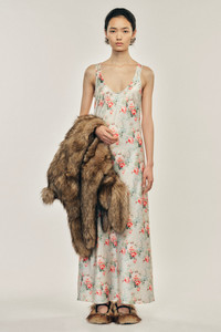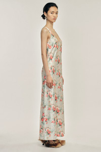 This simple yet elegant design showcases a seasonal floral printed satin for a timeless feminine look. It has a scoop neckline and thin shoulder straps that complement its column silhouette. Product Details Floral print satin maxi dress - Scoop neck - Slim fit Composition: 97% Polyester 3% Elastane SKU: 7436 1271 BABY BOUQUET Size & Fit Model is wearing size 6.