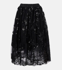 A mainstay at London Fashion Week, Simone Rocha's artful aesthetic is a subversive take on romance. This midi skirt is made in Portugal and features sequin embellishments, an elasticated waistband, and side slit pockets. Product Details - Material: 100% polyester - Care instructions: dry clean - Made in Portugal - Designer color name: Black - Item color: black - Material II: 100% polyamide - Material III: 100% nylon - Lining: 60% acetate, 40% cupro - Elasticated waistband - Pockets: side slit pockets - Item number: P01112227 Size & Fit - True to size - Elasticated waist - Non-stretchy fabric - The model seen in the picture is 178cm-5'10" and wearing a size UK 8
