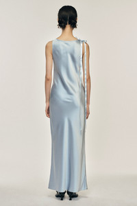 A simple scoop neck maxi length dress featuring a bow ribbon detail at the shoulder. Like the runway, it can be paired with the Long Faux Fur Hare Scarf. Product Details Silk satin maxi dress - From Look 30 on the runway - Scoop neck - Bow detail at shoulder - Slim fit Composition: 100% Silk SKU: 7436R 1251 BABY BLUE Size & Fit Model is wearing size 6.