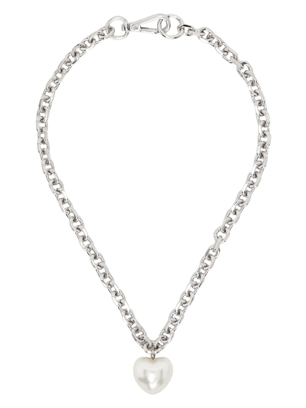 Cable chain necklace in silver-tone brass. · Pearl pendant at drop · Lanyard-clasp fastening · L17" Supplier color: Pearl