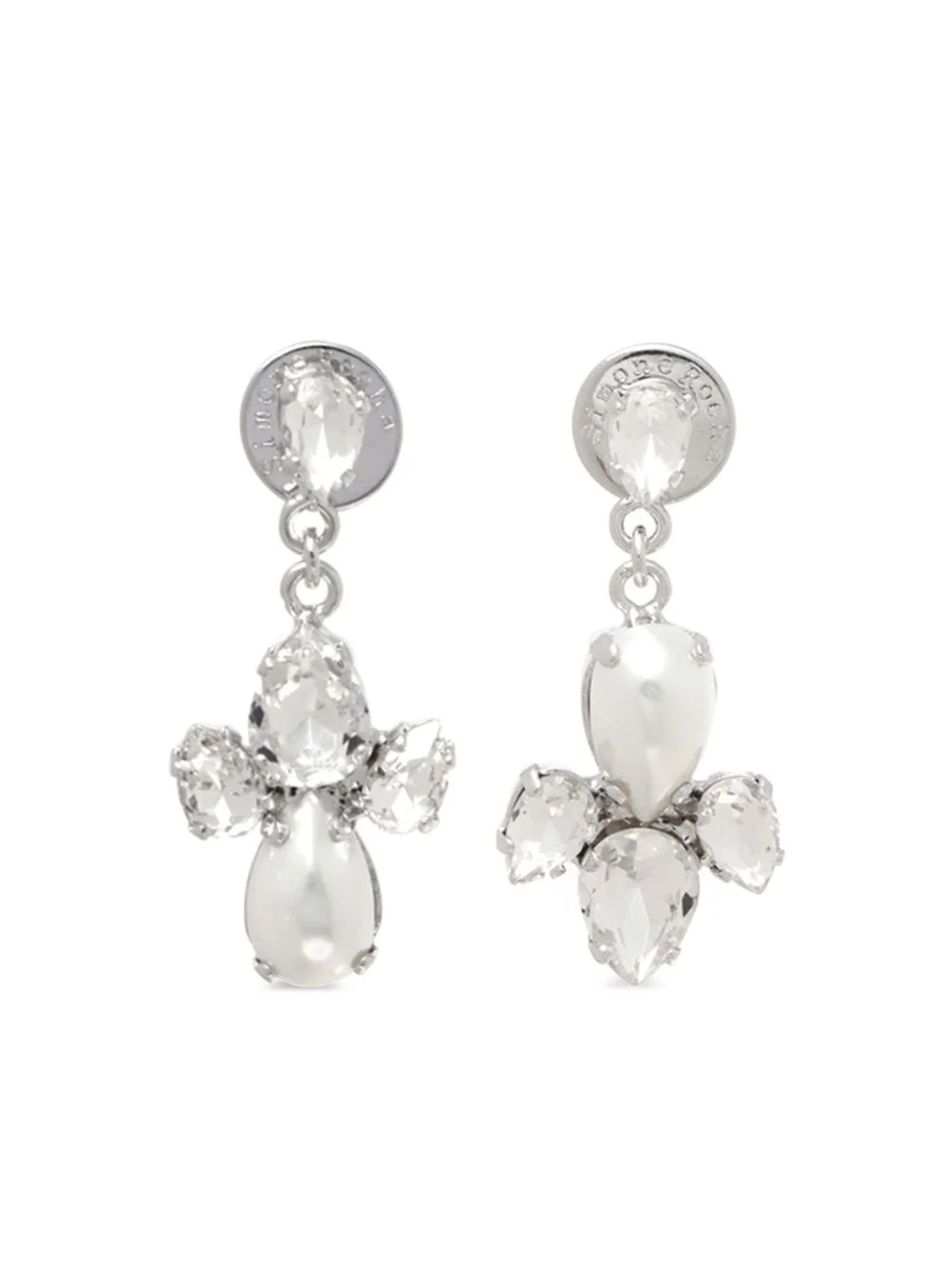 cross pendant earrings Highlights - Silver-tone - Cross pendant - Glass crystal embellishment - Polished finish - For pierced ears Made in Italy