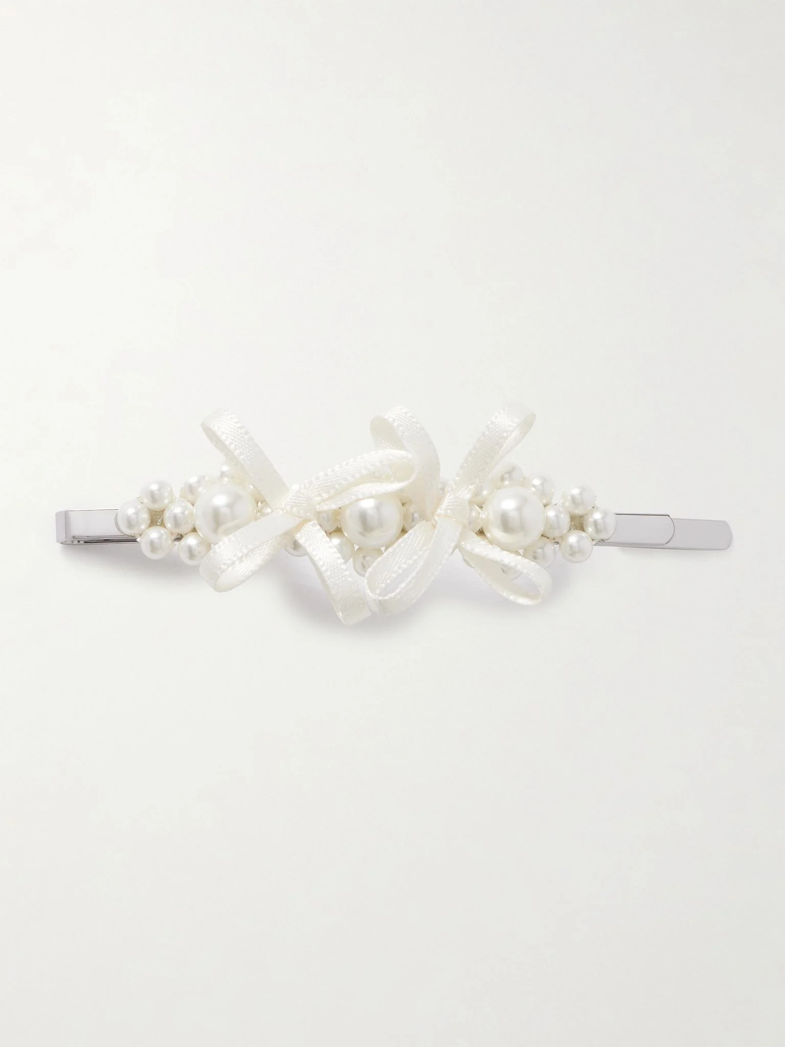 Incorporating Simone Rocha's signature femininity, this hair clip is a gorgeous way to finish off day and evening looks. Made from silver-tone metal, it's embellished with faux pearls arranged into a trio of pretty blooms and topped with tiny satin bows. Details & Care - Clip fastening
