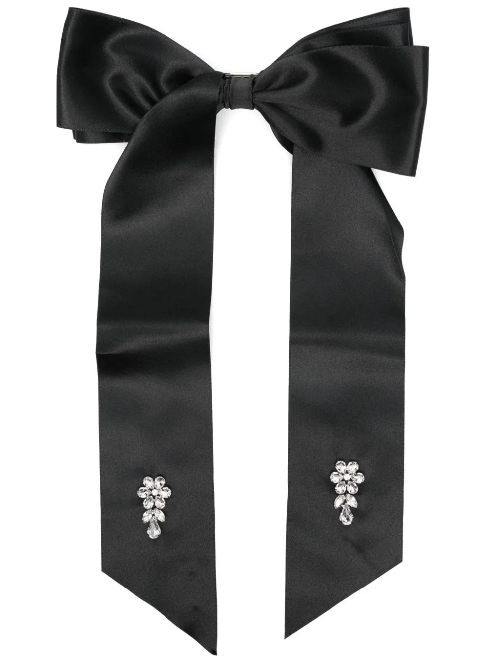 crystal flower bow barret Highlights - Black - Silk - Satin weave - Flower crystal embellishment - Oversize bow - French barrette fastening Imported Composition Silk 100% SIZE & FIT Measurement LENGTH 14.96 in(38 cm) WIDTH 8.26 in(21 cm)