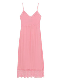 Deep midi dress Highlights - Flamingo pink - Adjustable spaghetti straps - Gathered detailing - Lace trim Imported Composition Acetate 73%, Silk 27%