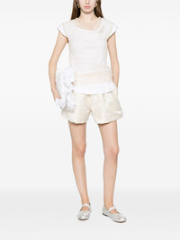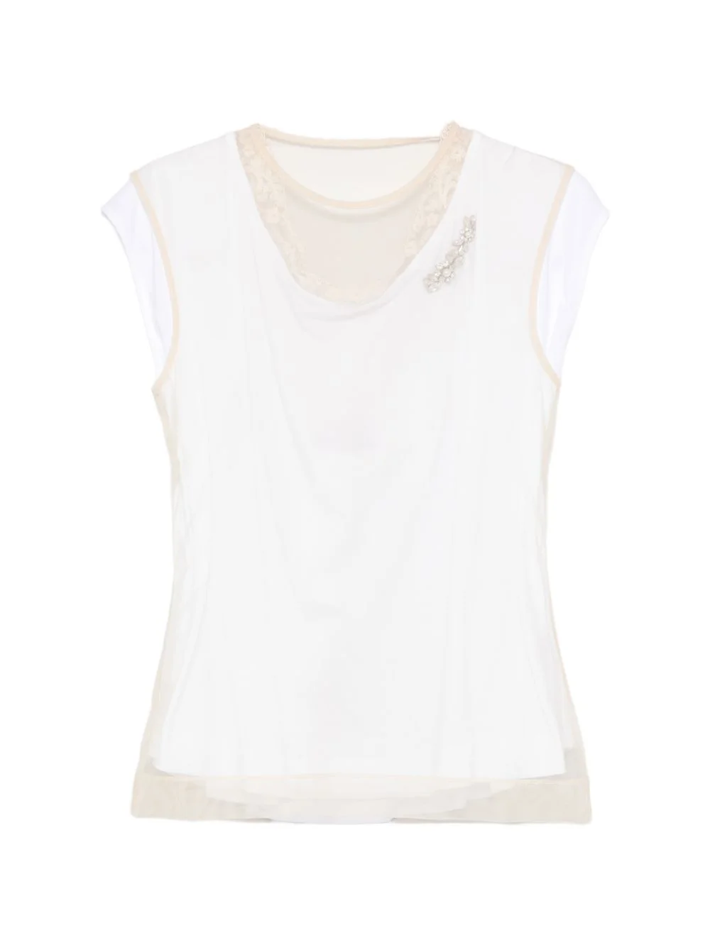 layered lace-trim T-shirt Highlights - White and beige - Lace trim - Cap sleeves - Layered design Imported Composition Cotton 100%, Viscose 100%, Polyamide 82%, Elastane 18% Washing instructions Hand Wash