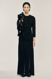 A bias cut effect skirt made up of patchwork wool-blend panels, the full length skirt is exaggerated with multiple asymmetrical slits at the bottom to give the piece movement. The model is wearing this style with the Turbo Embellished Sculpt Top. Product Details Venetian wool maxi skirt - From Look 46 on the runway - Panelled construction - Seasonal slit detail - Zip closure Composition: 45% Virgin Wool 55% Polyester SKU: 3168 1217 BLACK Size & Fit Model is wearing size 6.