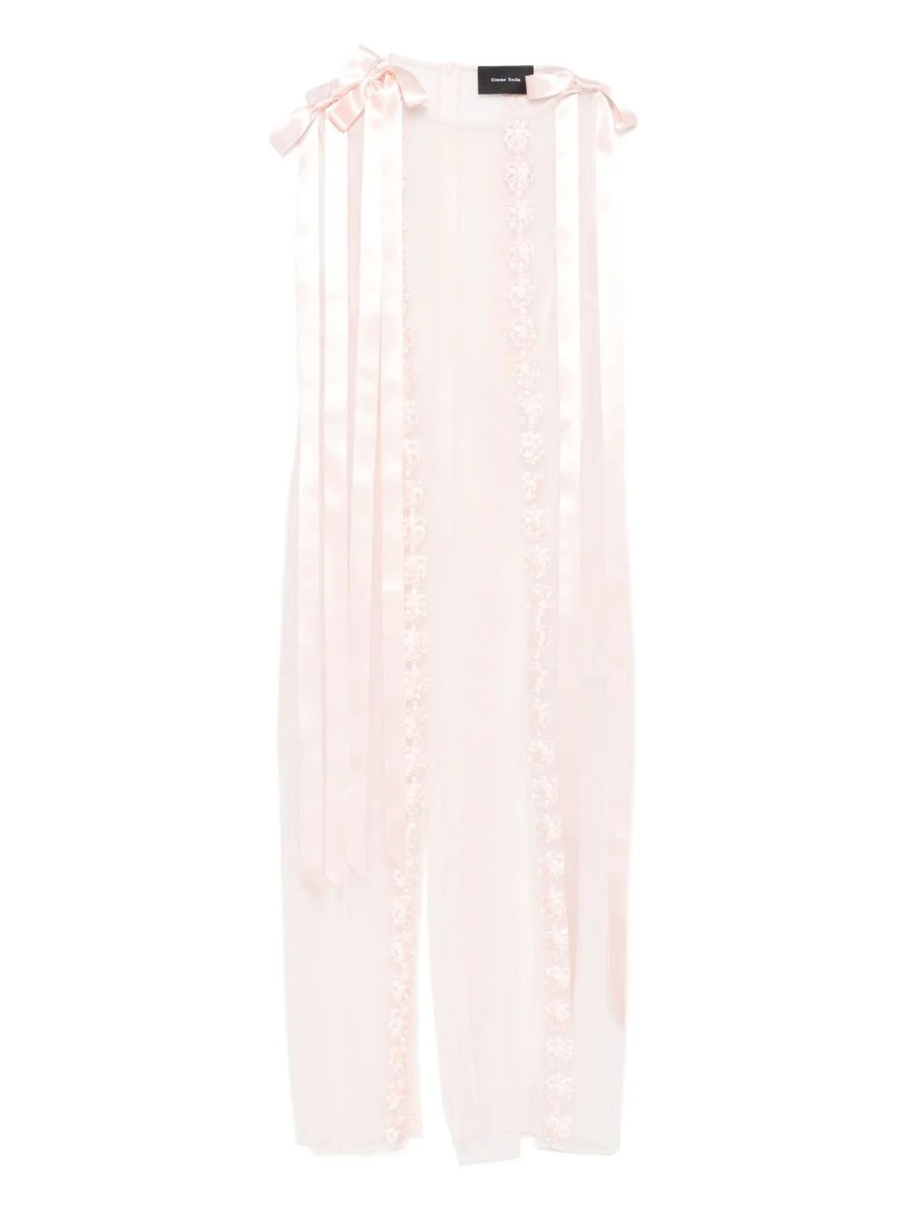 ribbon-trimmed sleeveless midi dress Highlights - Pale pink - Tulle fabric - Ribbon ties - Floral embellishment - Sleeveless Imported Composition Polyester 100%, Polyamide 100% SIZE & FIT Model measurements Height 5 ft 10 in(1.79 m) Bust/Chest 31.88 in(81 cm) Hips 35.43 in(90 cm) Waist 23.62 in(60 cm) Washing instructions Machine Wash