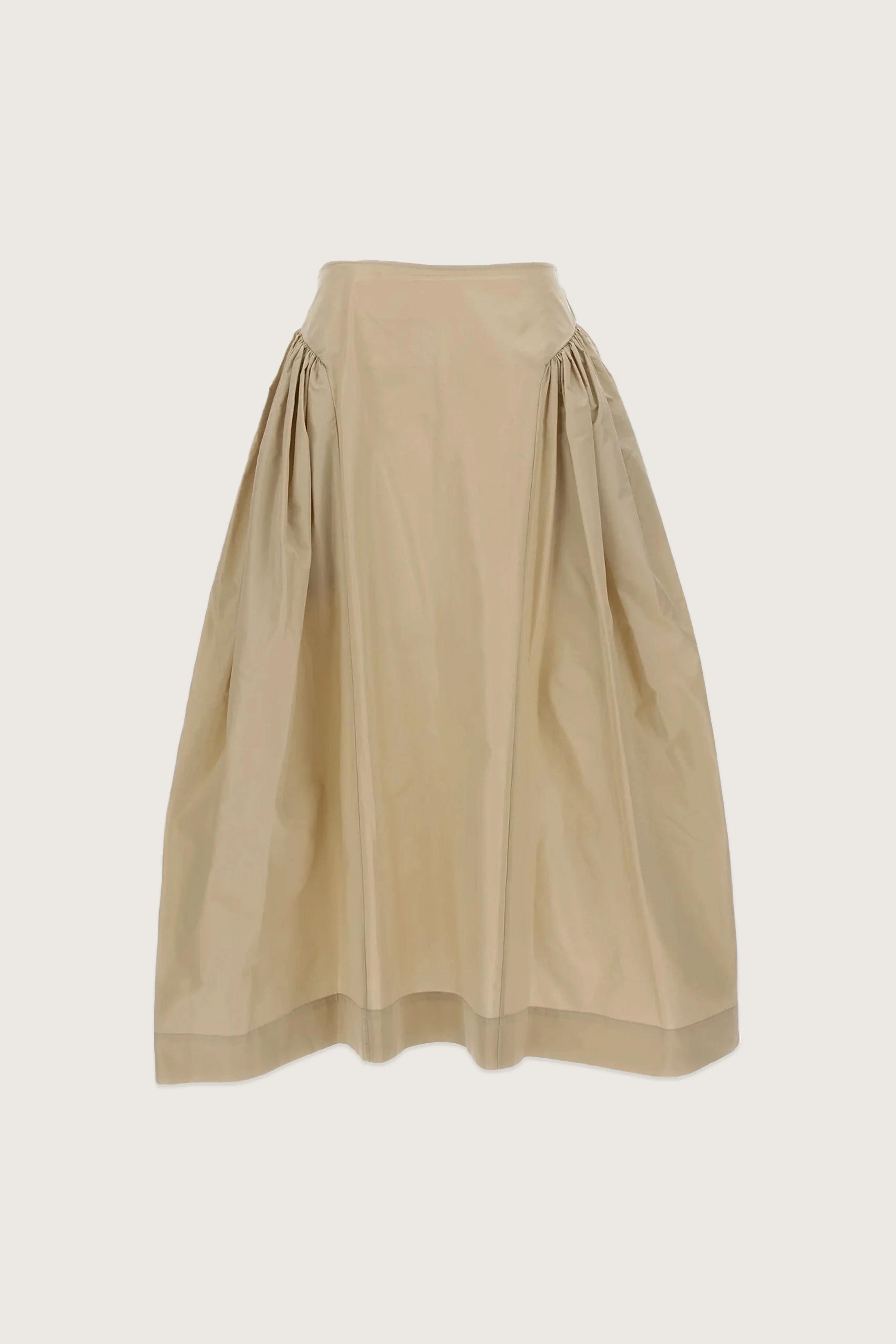 Form fitted at the waist, the skirt cascades from the hips to form a billowy structural silhouette in Simone Rocha's signature taffeta. Paired perfectly with the Draped Bind Peplum Top. Product Details Taffeta maxi skirt - Exaggerated hip detail - Concealed pockets at side - Zip closure Composition: 70% Acetate 30% Polyester SKU: 3171 1281 STONE