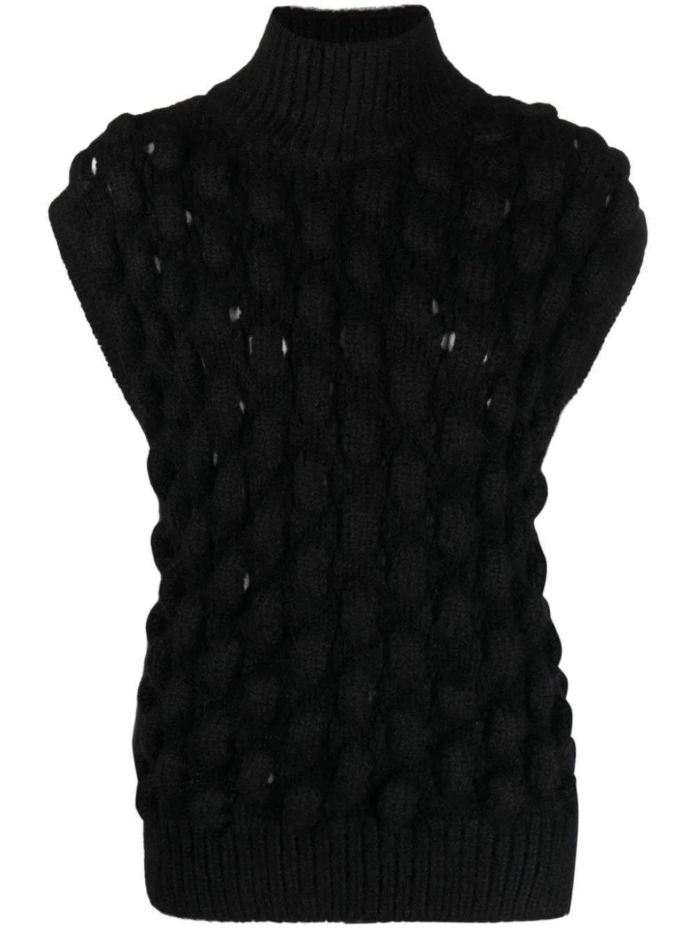 sleeveless turtleneck jumper Simone Rocha is known for their use of elegant detailing. Seen on this AW23 collection jumper, a sleeveless silhouette and textured bubble knit adds a contemporary twist. Highlights - Black - Alpaca wool-blend - Bubble-knit finish - Funnel neck - Sleeveless - Ribbed trim - Straight hem - Pull-on style Imported Composition Alpaca 55%, Wool 23%, Polyamide 22% SIZE & FIT Model measurements Height 5 ft 10 in(1.78 m) Bust/Chest 33.07 in(84 cm) Hips 36.61 in(93 cm) Waist 24.8 in(63 cm) FittingInformation Designed for a relaxed fit, this piece allows for comfort and movement when worn Made with a midweight knit, this piece offers some stretch This piece fits true to size – take your usual size Washing instructions Hand Wash