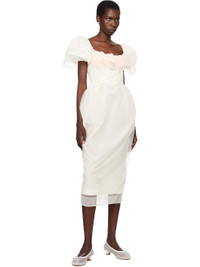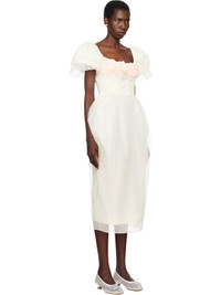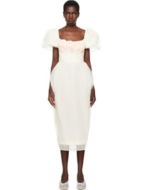 Sheer nylon tulle maxi dress. Gathering throughout. · Square neck · Floral appliques at chest · Seam pockets · Puff sleeves · Central vent at back hem · Full satin lining Part of the exclusive SSENSE Bridal capsule. Supplier color: Ivory Body: 100% polyamide. Trim 1: 100% polyamide. Trim 2: 100% polyester. Lining: 60% acetate, 40% cupro. Made in Portugal 252405F055002
