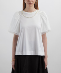 DETAILS Cotton jersey t-shirt Relaxed fit Short puff-sleeves with tulle overlay Crew neckline Pearl embellishment SIZE & FIT Model is 175cm/5'9"; Chest: 77cm; Waist: 57cm; Hip: 87cm and wears a size S COMPOSITION & CARE 100% Cotton Tulle overlay: 100% Polyester Dry clean