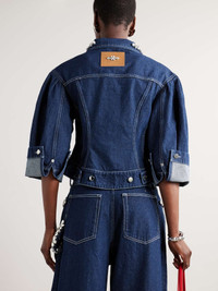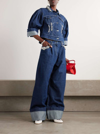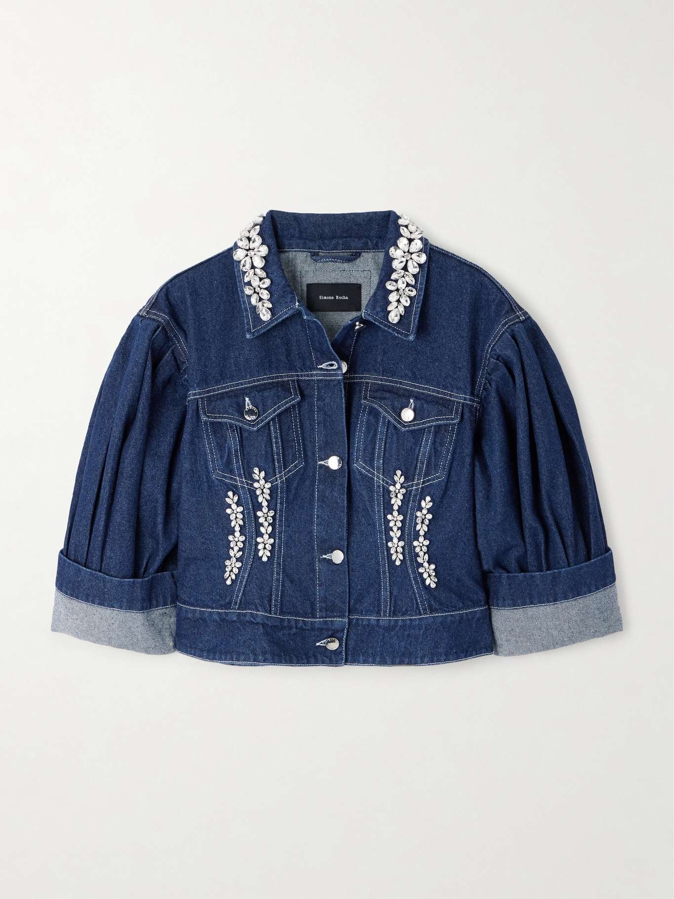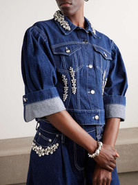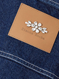 EDITORS'NOTES Simone Rocha's denim jacket is embellished with radiant crystals and faux pearls. It has classic topstitched seams that contour the bodice into a bustier-inspired shape. Reference the runway and contrast it with fabrics like tulle and silk. SIZE & FIT Model measurements: - Fits true to size, take your normal size - Designed for a slim fit - Mid-weight, non-stretchy denim - Model is 180cm/ 5'11" and is wearing a UK 8 - Bust: 80cm/ 31.5" - Waist: 60cm/ 23.5" - Hip: 89cm/ 35" DETAILS & CARE - Indigo denim - Button fastenings through front - 100% cotton - Dry clean