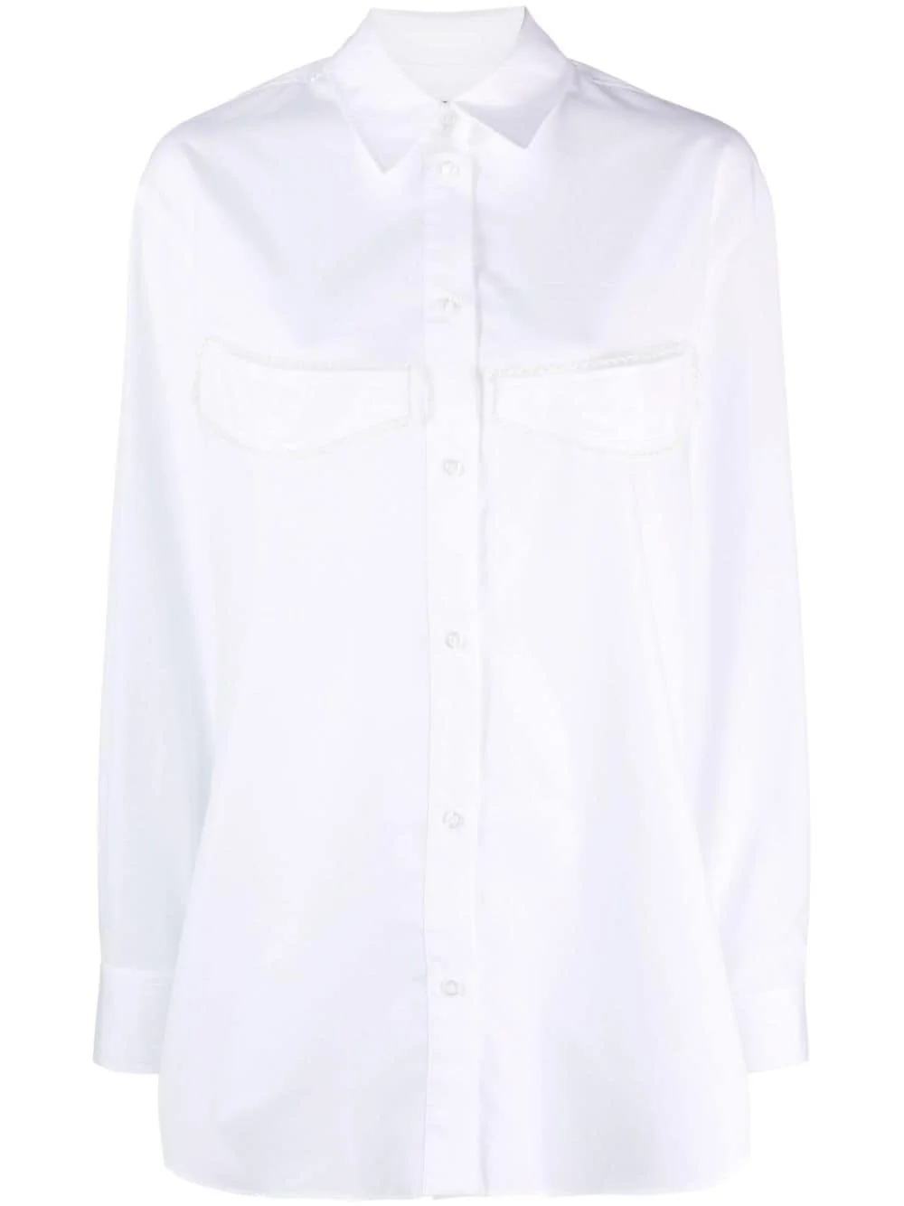 long-sleeve cotton shirt Simone Rocha adds a touch of its romantic style to this classic cotton shirt with scallop-trimmed detailing at the chest. Highlights - White - Cotton - Classic collar - Applique detail - Front button fastening - Long sleeves - Buttoned cuffs - Straight hem Imported Composition Cotton 100%, Polyamide 100%, Viscose 100% SIZE & FIT Model measurements Height 5 ft 10 in(1.78 m) Bust/Chest 30.7 in(78 cm) Hips 36.22 in(92 cm) Waist 25.59 in(65 cm) FittingInformation Designed for an oversized fit, offering additional room throughout Made from a midweight non-stretch fabric This piece fits true to size – take your usual size Washing instructions Machine Wash