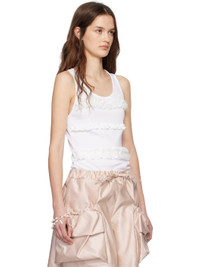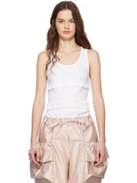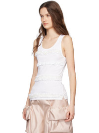 Cotton jersey tank top. · Rib-knit scoop neck and armscyes · Jersey and tulle ruffles at front · Vented side seams Supplier color: White Body: 100% cotton. Trim: 100% polyamide. Made in Portugal 251405F111010