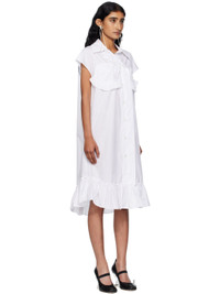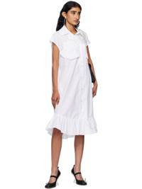 Cotton poplin midi dress. · Spread collar · Button closure with extended placket · Ruffled trim at chest and hem · Shirttail hem · Box pleat at back yoke Supplier color: White 100% cotton. Made in Portugal 252405F054010