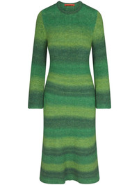 Axon dress Highlights - Grass green/multicolor - Fine ribbed - Horizontal stripe pattern - Round neck - Bell sleeves - Flared hem - Slim cut Imported Composition Acrylic 62%, Polyester 28%, Wool 7%, Lycra 3% SIZE & FIT Measurement BUST 32 in(81.3 cm) LENGTH 49.01 in(124.5 cm) WAIST 25.98 in(66 cm) SLEEVE LENGTH 25 in(63.5 cm) HIPS 30.98 in(78.7 cm) Washing instructions Machine Wash