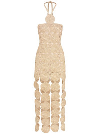 Beep Beep midi dress Highlights - Gold-tone - Cotton - Layered design - Lurex detailing - Crochet knit - Halterneck tie fastening - Cut-out detailing - Circular design - Sleeveless - Fitted waistline - Mid-length Imported Composition Lining: Cotton 100% Outer: Polyester 100%
