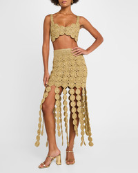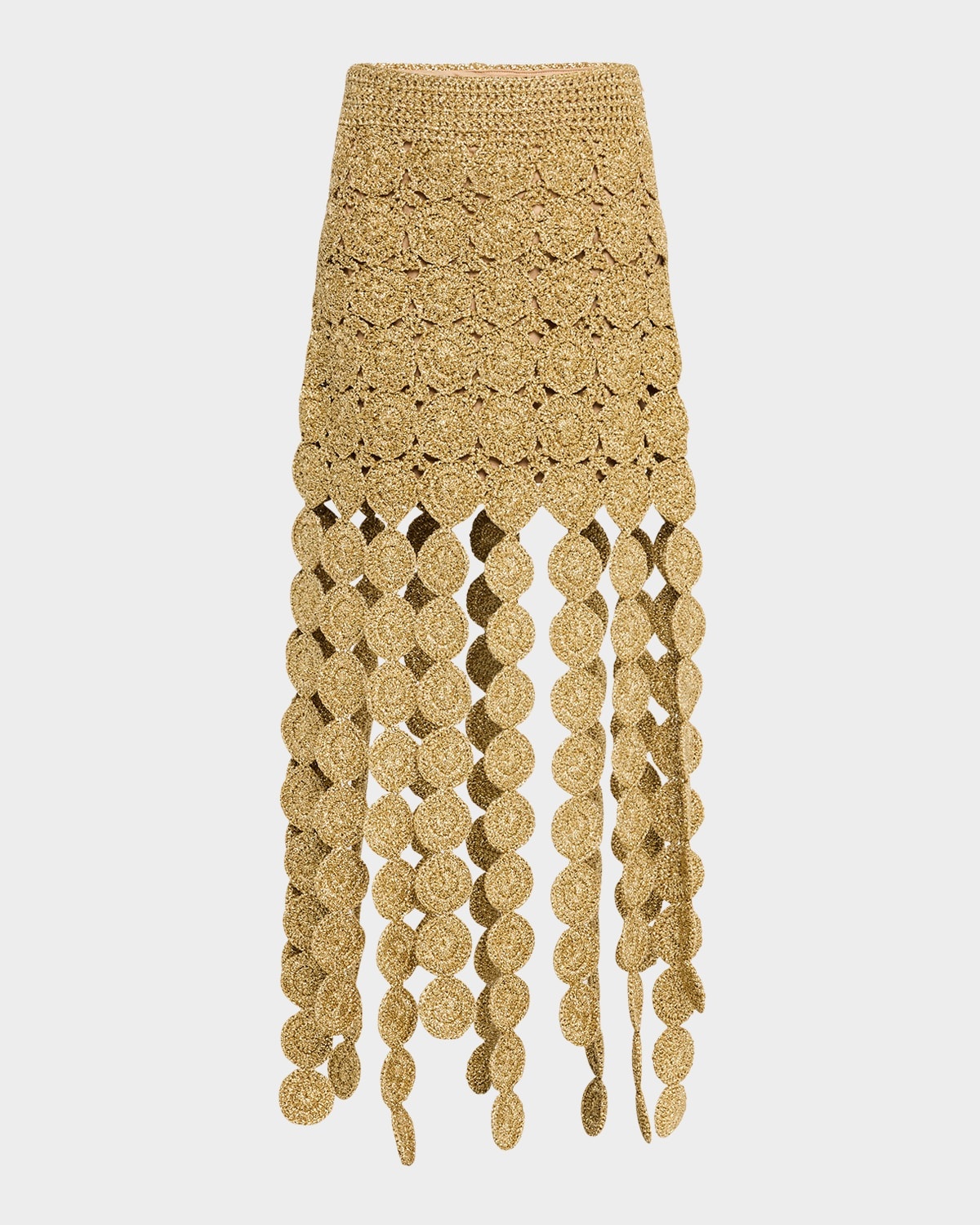 - SIMONMILLER "Beep Beep" hand-knit lurex crochet maxi skirt with circular cutout details - High-rise waistband - Full length - Skirt falls straight from hip to hem - Slip-on style - Polyester - Imported Online Inquiries: NMS21_T5W23 Store Inquiries: #4841210