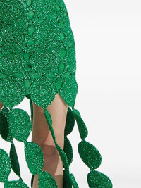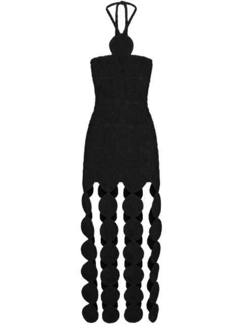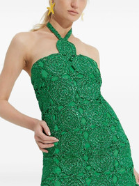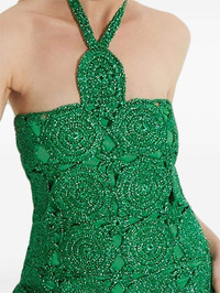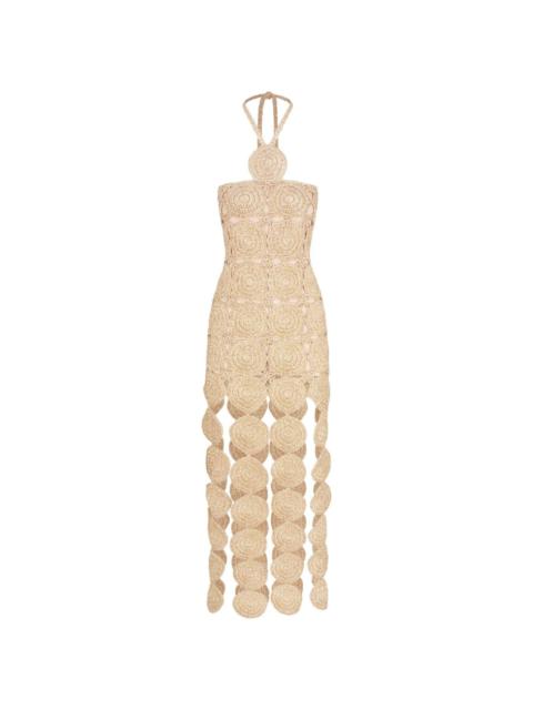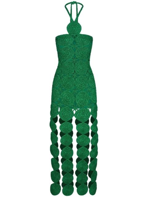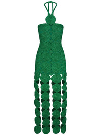 Beep Beep midi dress Highlights - Green - Cotton - Layered design - Lurex detailing - Crochet knit - Halterneck tie fastening - Cut-out detailing - Circular design - Sleeveless - Fitted waistline - Mid-length Imported Composition Lining: Cotton 100% Outer: Polyester 100%