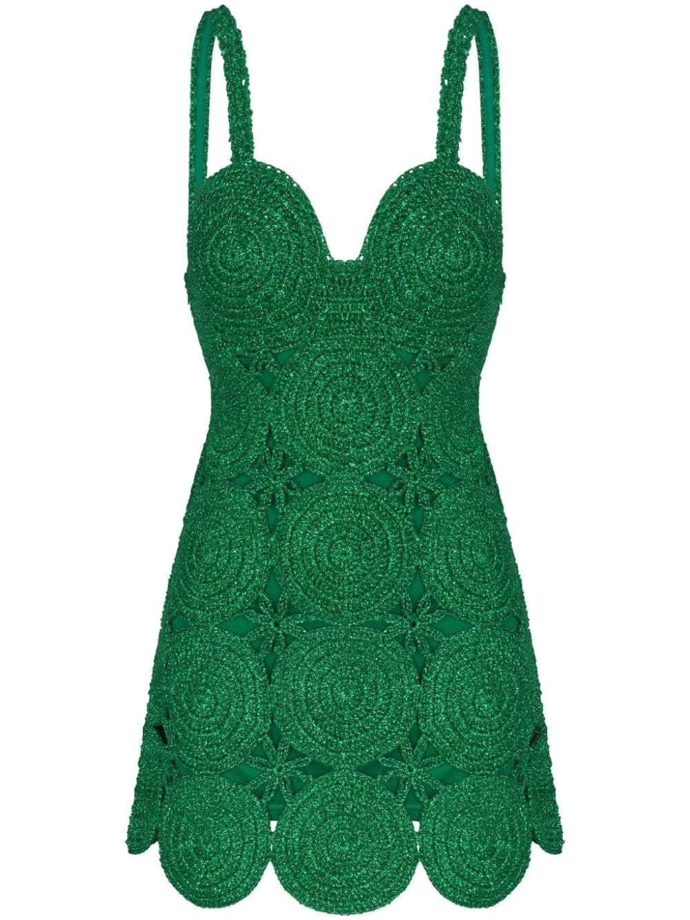 Beep Beep mini dress Highlights - Ivy green - Crochet knit - Lurex detailing - Circular design - Cut-out detailing - Sweetheart neck - Slip-on style - Thin shoulder straps - Fitted waistline - Thigh-length - Scallop hem Imported Composition Lining: Polyester 100% Outer: Polyester 100%