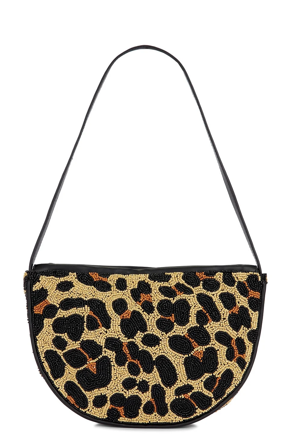 - Beaded exterior with faux leather trim and silver-tone hardware Textile lining - Top zip closure - One main compartment - One interior slip pocket - Measures approx 10.2" W x 7.3" H x 2.4" D Shoulder strap with a 9.4" drop - Revolve Style No. SIMO-WY100 - Manufacturer Style No. S1055-9267