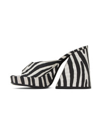 Ottoman heeled sandals in black and white. Zebra pattern printed throughout. · Open round toe · Strap at vamp · Textile logo patch at padded leather footbed · Covered platform midsole and block heel · Rubber injection at heel · Leather outsole in black · Platform: H1 in · Heel: H4.5 in Supplier color: Zebra trip Upper: textile. Sole: leather, rubber. Made in Portugal 231708F125002