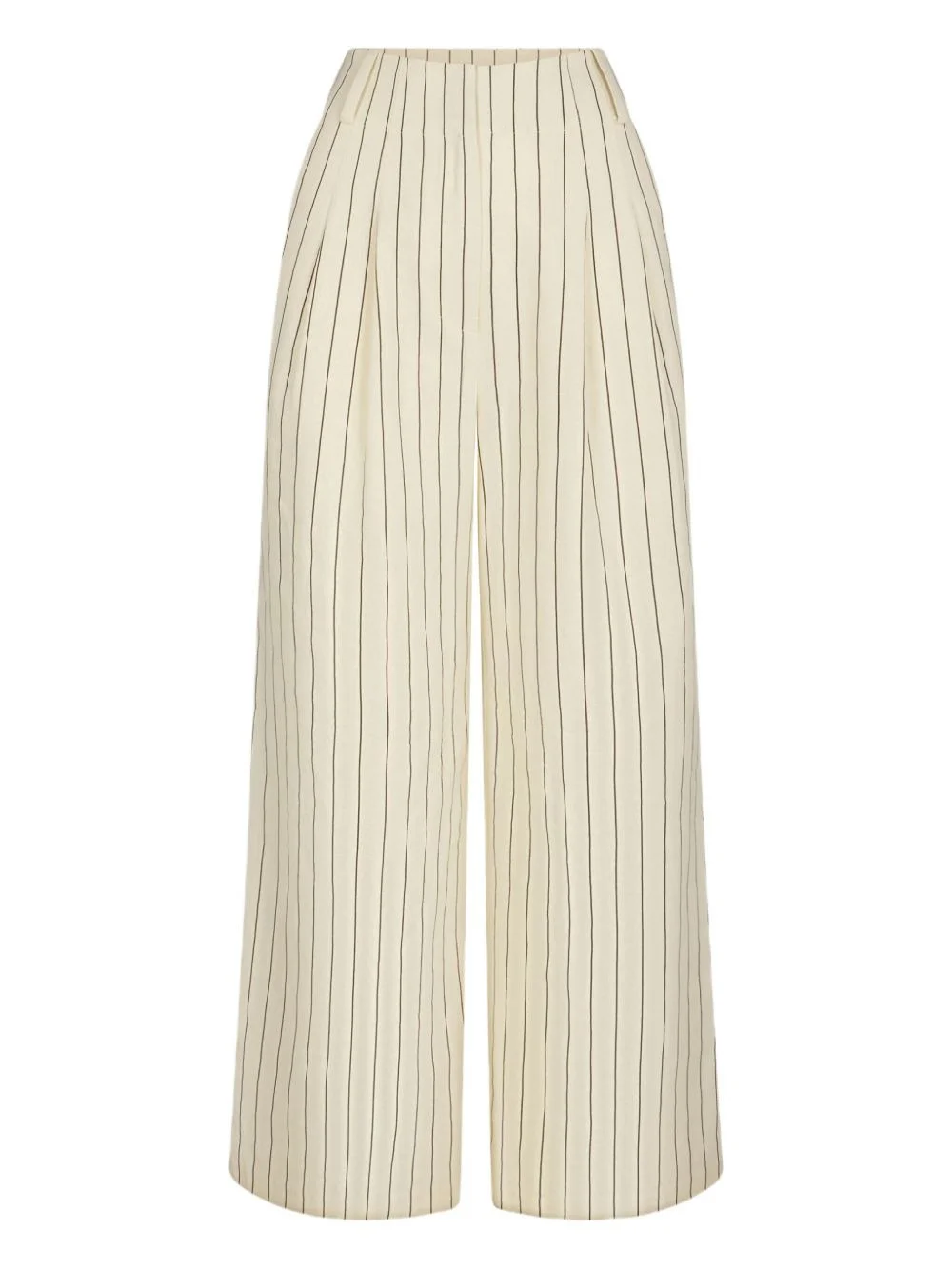 Bloo pinstripe linen trousers Highlights - Cream - Pinstripe pattern - High waist - Pleated front - Straight hem Imported Composition Linen/Flax 55%, Cotton 45% Washing instructions Dry Clean Only