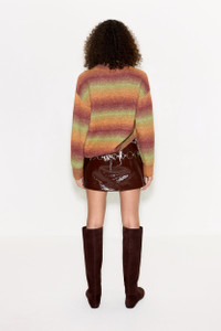 A mock neck knit sweater with Simon Miller stripes. This item is final sale. Color: autumn ombre DETAILS Model: W7180-6094-96503 50% ACRYLIC / 26% POLYESTER / 14% NYLON / 7% WOOL / 3% ELASTANE HAND WASH ONLY, INSIDE AND OUT, LAY FLAT TO DRY, DO NOT IRON Imported SIZING Model wears a size S.