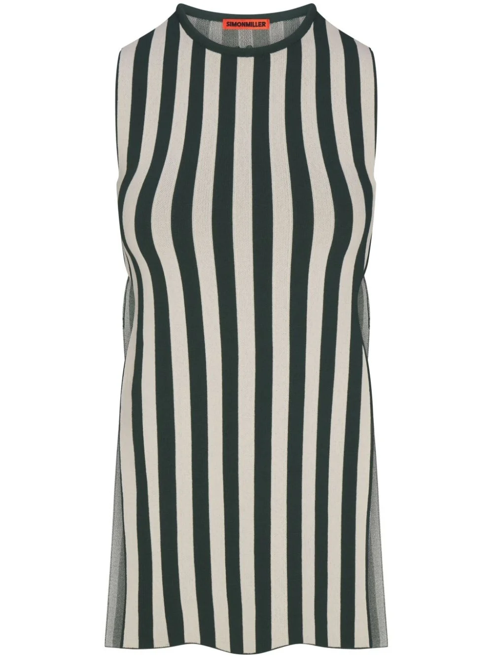 Canoga top Highlights - Dark green - Vertical stripe pattern - Crew neck - Side slits - Sleeveless Imported Composition Viscose 65%, Nylon 35%
