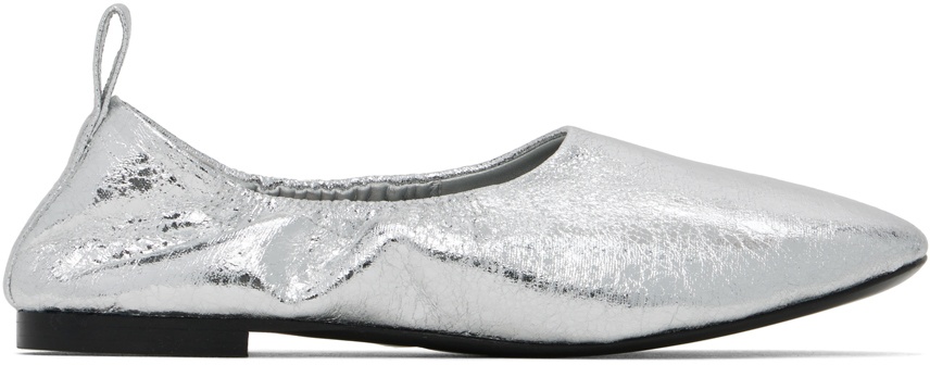 Crinkled lame ballerina flats in metallic silver tone. · Elasticized collar · Pull-loop at heel tab · Logo patch at padded leather footbed · Grained leather and suede lining · Leather sole with rubber injection Supplier color: Silver